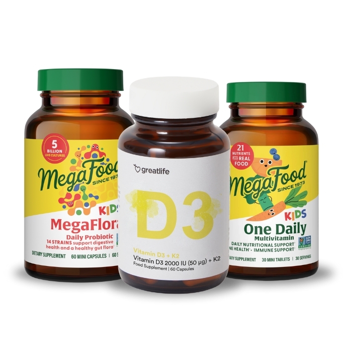 Barnpaketet för barn mellan 5–13 år innehåller flera bra produkter med näringsämnen som har en viktig roll i cellspecialiseringsprocessen och som bidrar till immunsystemets samt nervsystemets normala funktion.