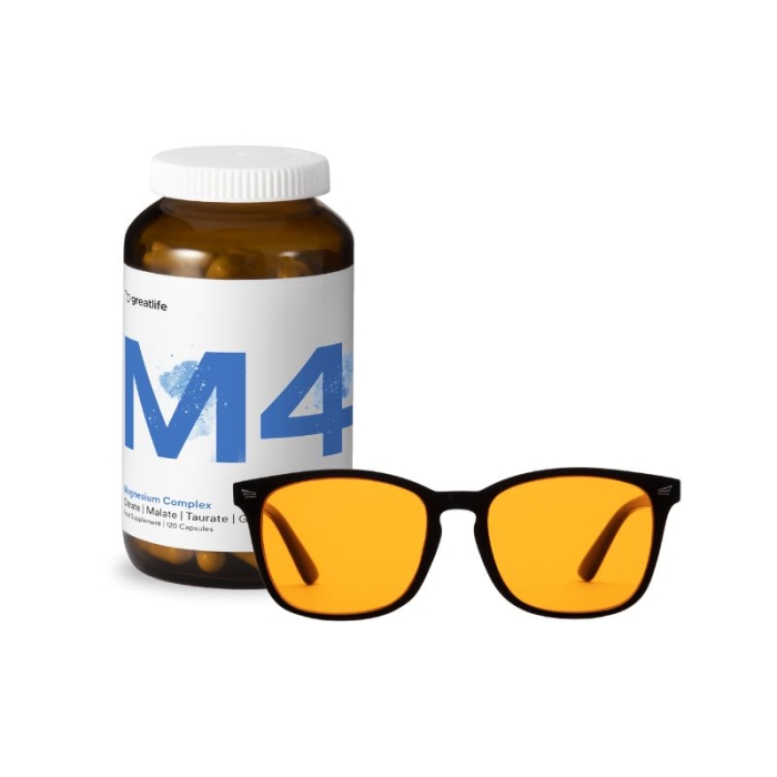 Ge dig själv bästa förutsättningar för en god natts sömn med vårt unika Black Week-paket! Det innehåller Magnesium, som stödjer avslappning och sömnkvalitet, samt blåljusblockerande glasögon för minskad skärmpåverkan kvällstid. Detta paket är perfekt för dig som vill förbättra din sömn på ett naturligt sätt. Finns endast på hemsidan till specialpris under Black Week.
