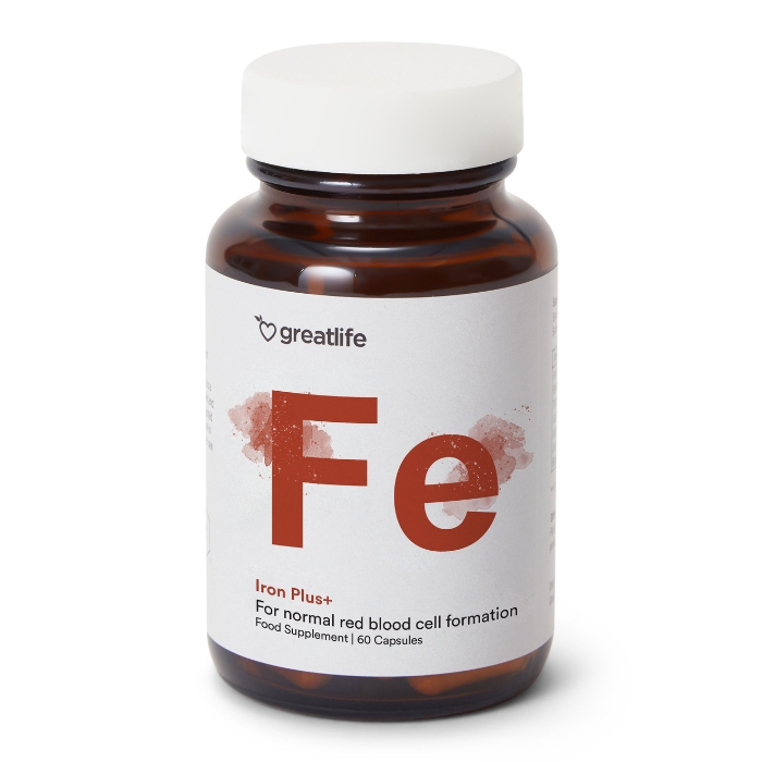Iron Plus+ från Greatlife är ett järntillskott av absolut högsta kvalitet utvecklat för att stödja normal blodbildning, syretransport och energiproduktion. Iron Plus+ innehåller järn i bisglycinatform med högt upptag och god magtolerans, i kombination med vitamin C, B6, folat och vitamin B12. Formulan är kompletterad med koppar för normal järnomsättning. Iron Plus+ är fritt från onödiga tillsatser och artificiella ämnen.