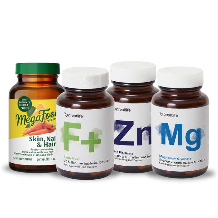 Radient Beauty är ett avancerat paket med fyra noggrant utvalda kosttillskott som samverkar för att ge näring till hud, hår och naglar på cellnivå. Kombinationen är utvecklad för dig som vill stödja kollagenbildning, skydda mot oxidativ stress och tillföra viktiga näringsämnen för frisk, fast hud, starka naglar och glansigt hår.